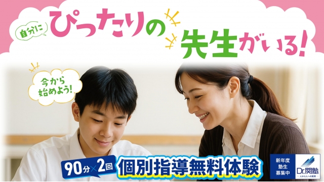 関塾40年以上の指導経験から多くの事例を比較検討し、共通因子に改善を加えたものが、「関塾パターン授業法」です。どのコースも教科担任制の完全個別指導を採用しており、生徒の目の動き、鉛筆の進み具合、悩んだ問題箇所などなど事細かにチェックし、瞬発的に授業に取り入れております。講師一人で生徒の『今』の状態を把握するには生徒2人が限界です。だから、当塾のコースは1:1or1:2の2種類。